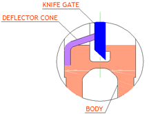 - Thicker knife gate to eliminate distortion under maximum differential pressure and to provide tight seating.